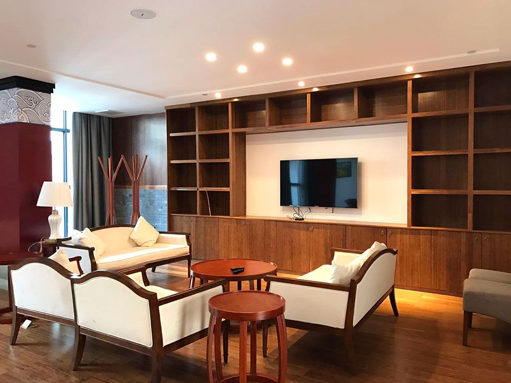 鋪設(shè)木龍骨后,在基層木龍骨的可視表面涂上木質(zhì)防火涂料。